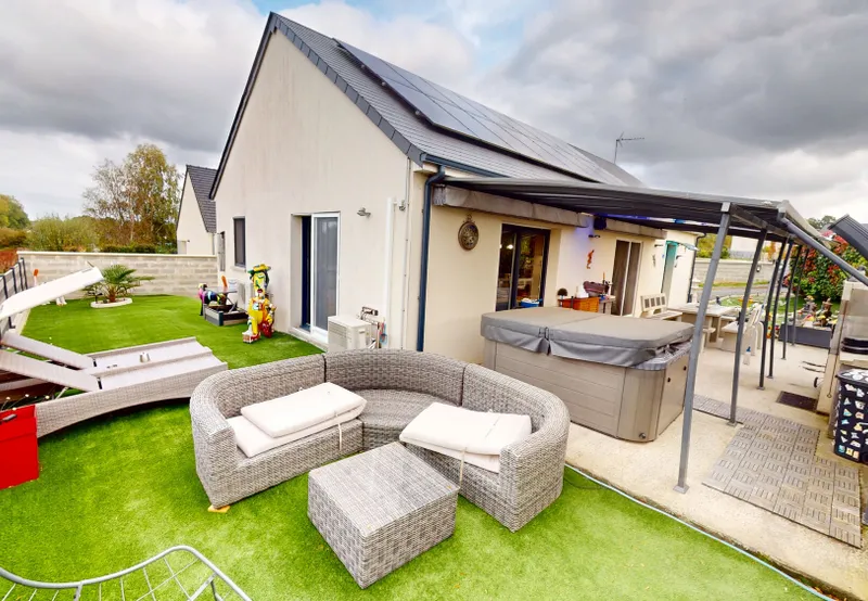 Rue du Particulier vous propose à la vente cette charmante maison individuelle de plain-pied de 104 m² habitables, édifiée sur un terrain de 450 m², à proximité immédiate de Bayeux.