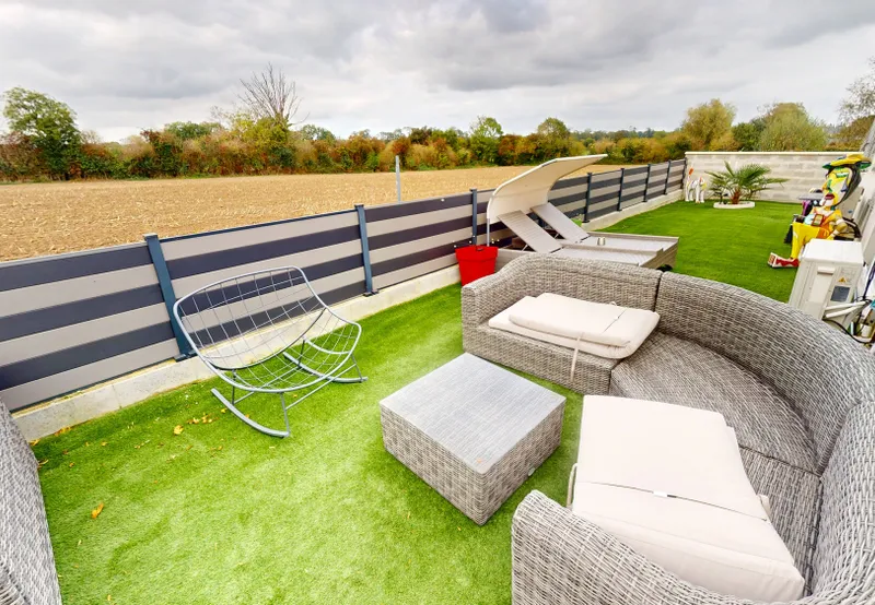L’ensemble s’ouvre sur une terrasse exposée plein Sud et un espace détente orienté Sud / Sud-Ouest, idéal pour profiter du soleil tout au long de la journée.