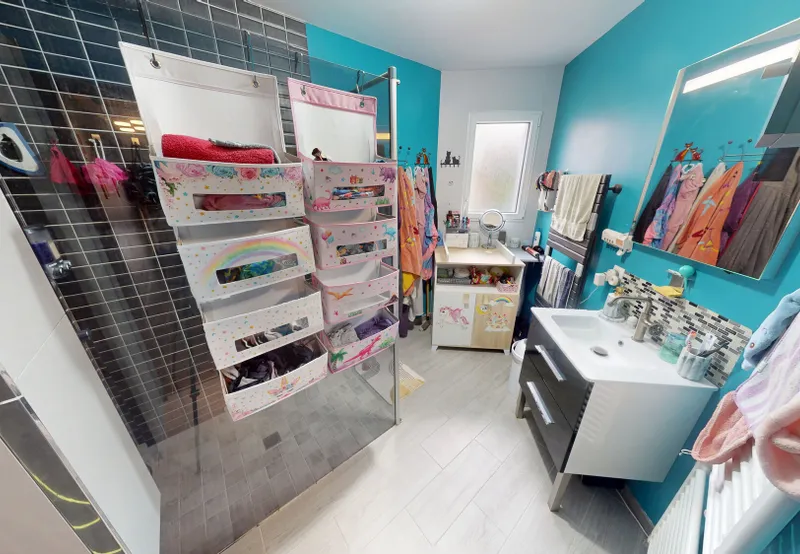 Côté nuit, vous trouverez quatre chambres de plus de 10 m² chacune (aucun mur porteur, permettant une modularité totale), une salle d’eau, une buanderie et un WC indépendant.
