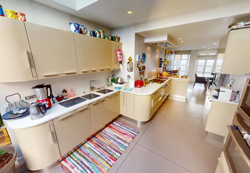 Au rez-de-chaussée, une entrée indépendante avec dressing mène à un vaste espace de vie de plus de 80 m², composé d’un salon avec cheminée à foyer ouvert, idéal pour vos soirées d’hiver, d’une salle à manger, et d’une cuisine haut de gamme entièrement équipée (plaque de cuisson, hotte avec extraction extérieure, réfrigérateur, cave à vin, plancha intégrée, four, micro-ondes, four vapeur et nombreux rangements).