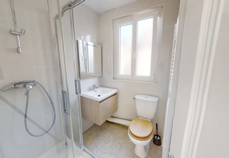 Ce bien situé au 3è étage se compose d’une pièce à vivre de 16m2 avec cuisine aménagée/équipée, d’une chambre exposée est donnant accès à une salle d’eau avec WC.