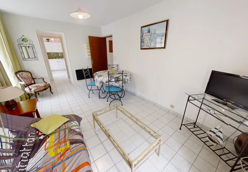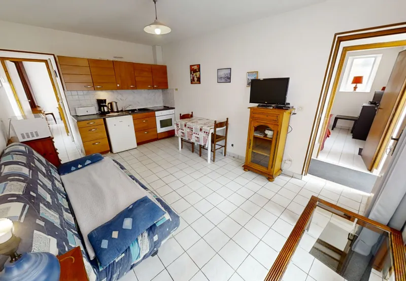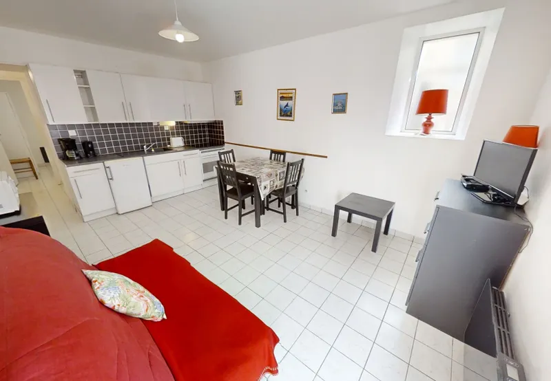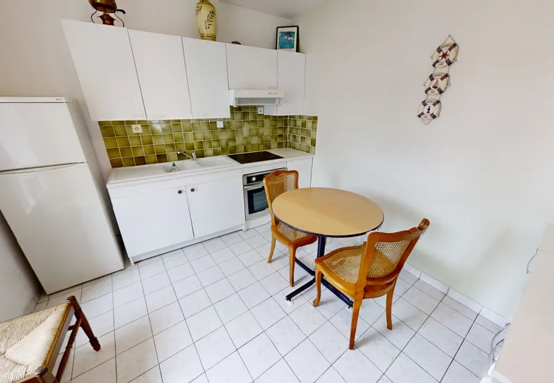 1 appartement de type T2 composé d’un séjour, une cuisine séparée AMÉNAGÉE et ÉQUIPÉE, 1 chambre, salle de bains, WC séparés.