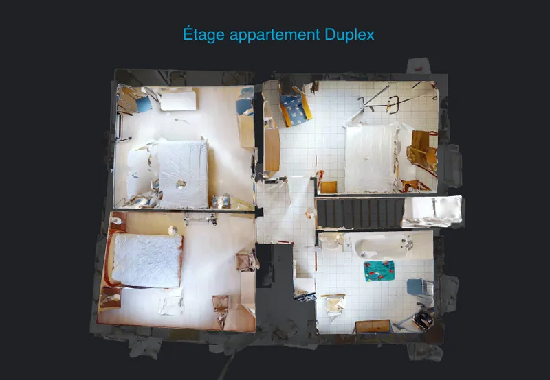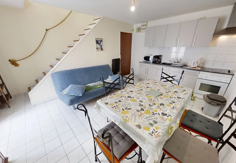 1 appartement Duplex de type T4 composé d’une pièce de vie avec cuisine ouverte AMÉNAGÉE et ÉQUIPÉE à l’étage un palier dessert 3 chambres, salle de bains et WC séparés.