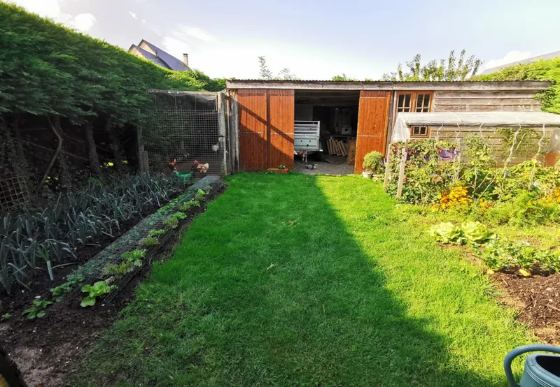 L'extérieur de la maison est entièrement clos et SANS VIS-À-VIS, il possède un cabanon de jardin, un autre espace de stockage, un espace potager ainsi qu'un GRAND DOUBLE GARAGE avec portes motorisées de 48 m2.