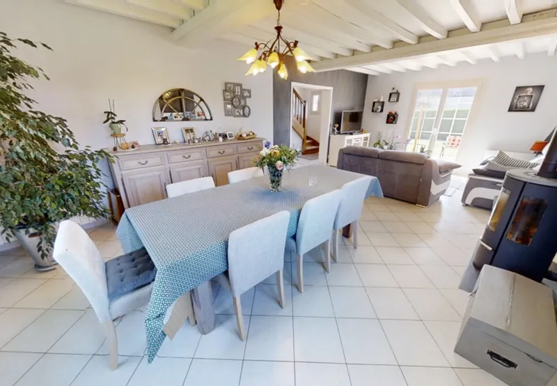 Rue du Particulier vous propose à la vente cette magnifique maison de 136 m2 habitables (environ 150 m2 au sol) édifiée sur un terrain verdoyant et arboré de 2 000 m2 dont 600 m2 constructibles.