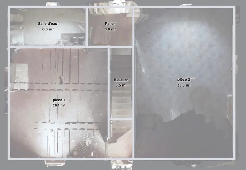 La maison se compose d'une entrée qui donne accès à deux pièces d'environ 36 m2 et 39 m2 de chaque côté.