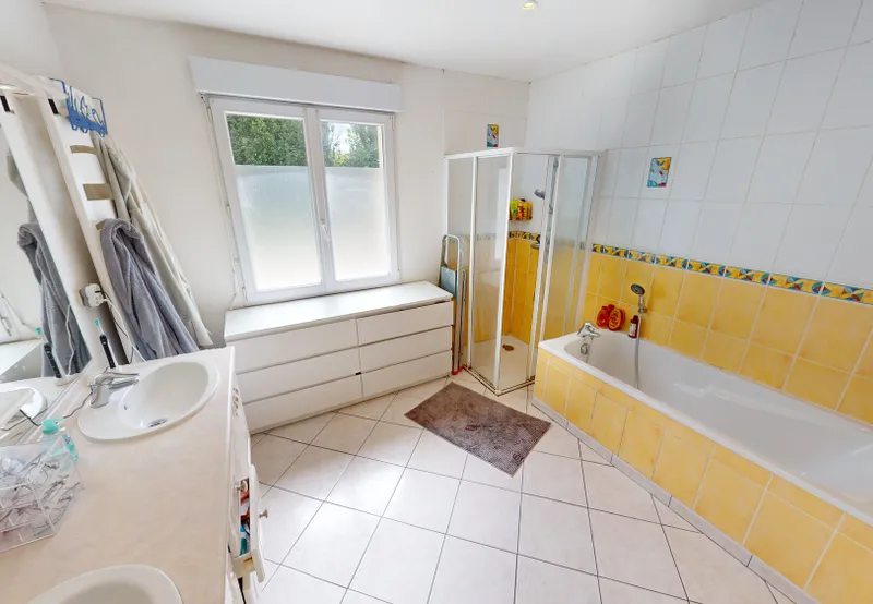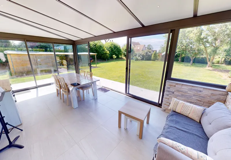 Sur ce même niveau vous retrouverez une SUBLIME VÉRANDA de 23 m2 avec une vue sur le jardin installée en 2022, une chambre, une grande salle de bains, un WC séparé permettant de profiter d'UNE VIE DE PLAIN-PIED.
