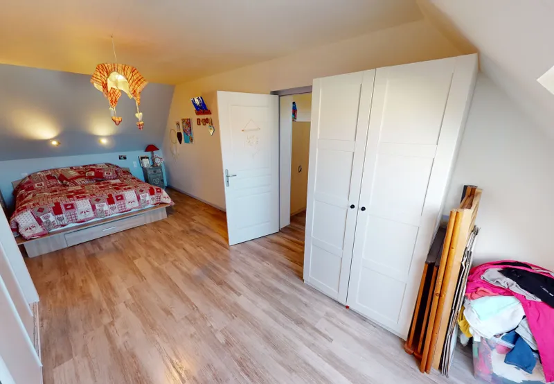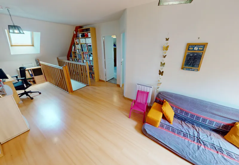 A l'étage une GRANDE pièce palière aménagée comme espace bureau, salon ouvert donne accès à 4 grandes chambres de 9,78 m2, 11,24 m2, 15,03 m2, et 18,20 m2 habitables (12,75 m2, 16,97 m2, 17,51 m2, et 28,65 m2 au sol) dont deux en enfilade permettant l'installation d'un dressing familial, une grande salle d'eau avec douche à l'italienne, WC séparé.