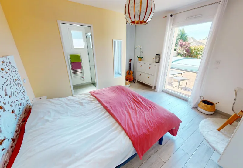 Elle vous offre en rez-de-chaussée une entrée avec rangements, une grande pièce de vie d'environ 55m2 exposée SUD-OUEST donnant accès à une TERRASSE avec PISCINE enterrée. Aussi, sur ce même niveau, une SUITE PARENTALE d’environ 18m2, donnant également accès à l’extérieur, composée d’une chambre avec rangements et espace bureau, ainsi que d’une salle d’eau privative. Enfin, une BUANDERIE de presque 9m2 permettant d’accéder au GARAGE DOUBLE. WC séparés.