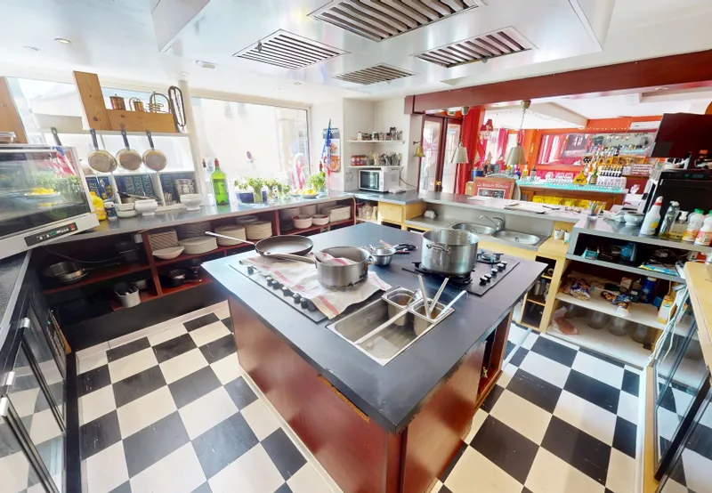 Le local est composé d'une entrée avec comptoir d'encaissement desservant la salle de restaurant d'environ 50 m2 pour 45 couverts, la cuisine ouverte sur ce dernier pour la convivialité, un espace plonge, 2 WC ainsi qu'une grande cave en sous-sol avec WC, vestiaire et douche pour le personnel, mais également une ancienne cuisine et un local de stockage.