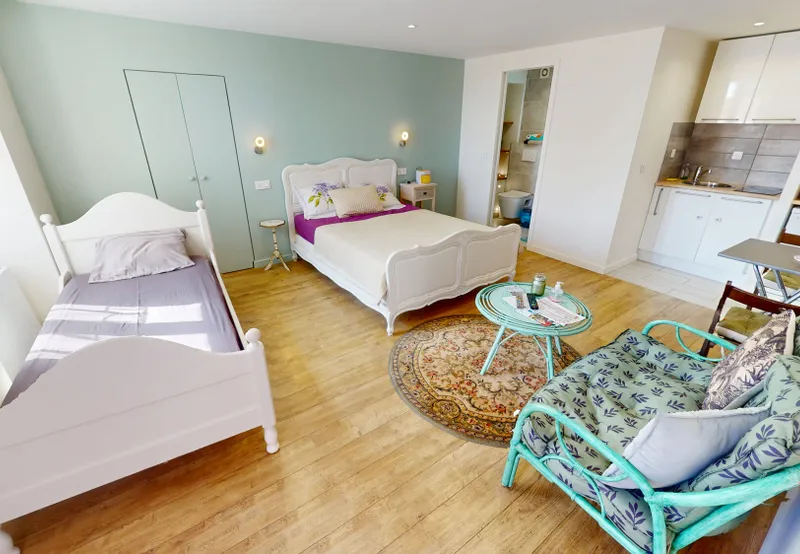 Cette maison de 192 m2 est dotée de la VIE DE PLAIN PIED grâce à son studio de 28 m2 comprenant une chambre avec rangements intégrés, kitchenette, salle d’eau et WC.