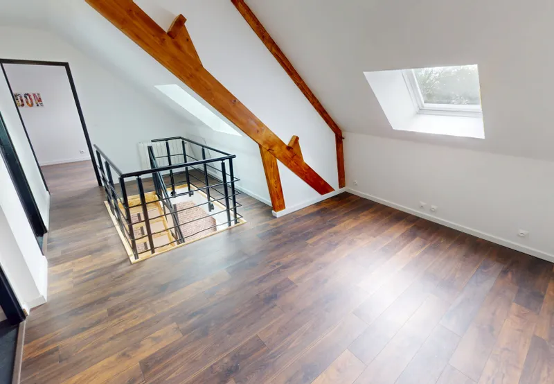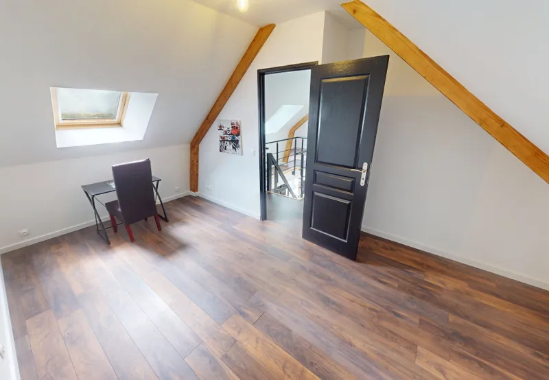 À l’étage (en état neuf), vous découvrirez deux chambres supplémentaires, un grand palier pouvant être aménagé en salon, coin bureau, ou cloisonné pour créer une pièce supplémentaire, une salle d’eau avec WC, ainsi qu’une pièce de grenier pouvant également être aménagée.