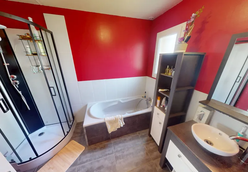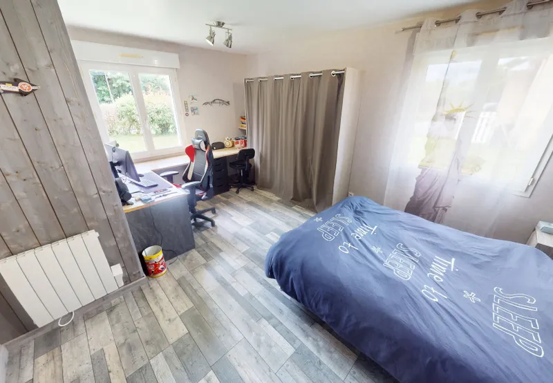 Sur ce même niveau, vous retrouverez trois chambres spacieuses, une salle de bains, un WC séparé, ainsi qu’une buanderie/lingerie, permettant une VIE DE PLAIN-PIED.