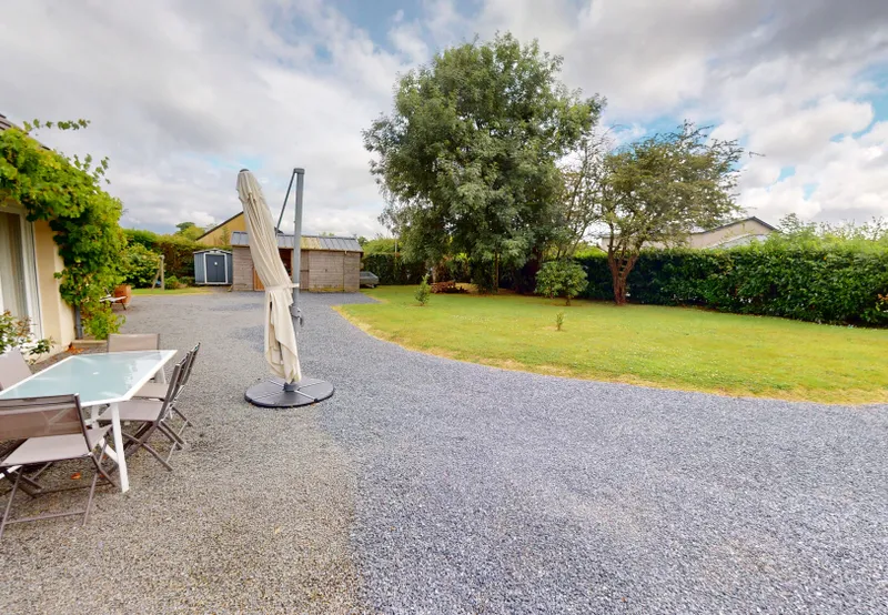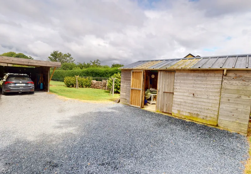 L’ensemble est implanté sur un terrain arboré et entièrement clos, doté d’une cour de stationnement permettant d’accueillir 4 à 5 véhicules, en plus d’un CARPORT et de cabanons de jardin.