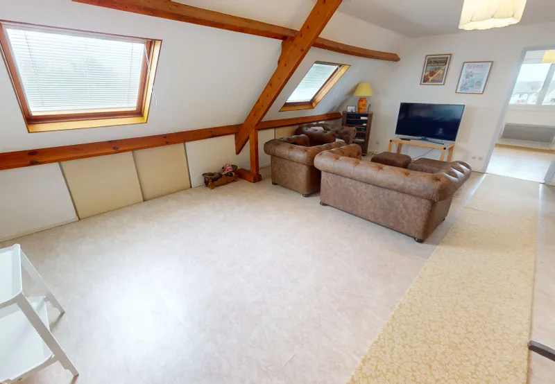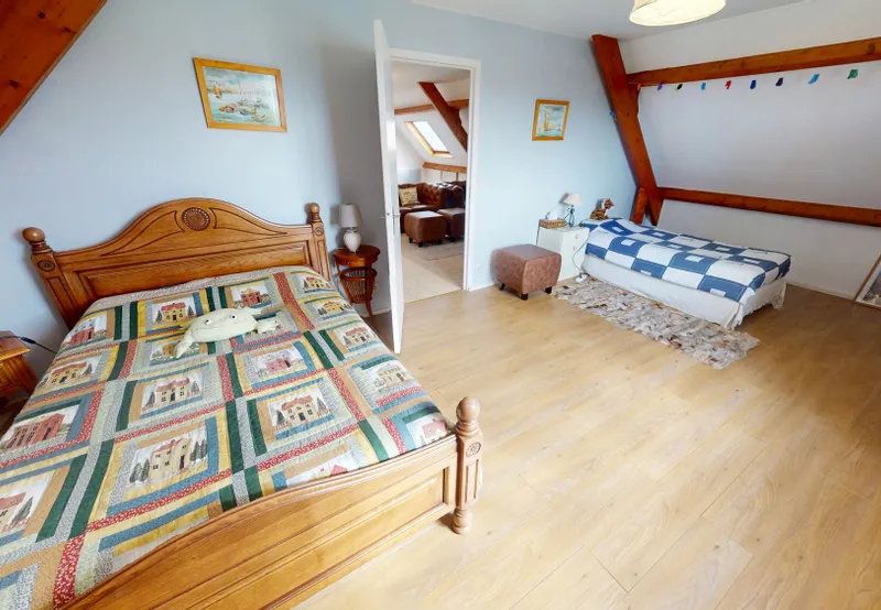 A l’étage, vous découvrirez un bel appartement avec sa VUE MER d’environ 65 m2 comprenant un beau séjour lumineux, une grande chambre de 21 m2, une cuisine AMÉNAGÉE, une salle de bain avec baignoire, meuble vasque et ses rangements sous pentes. Cet appartement est idéal pour accueillir famille et amis, ou pour réaliser une activité de location saisonnière.