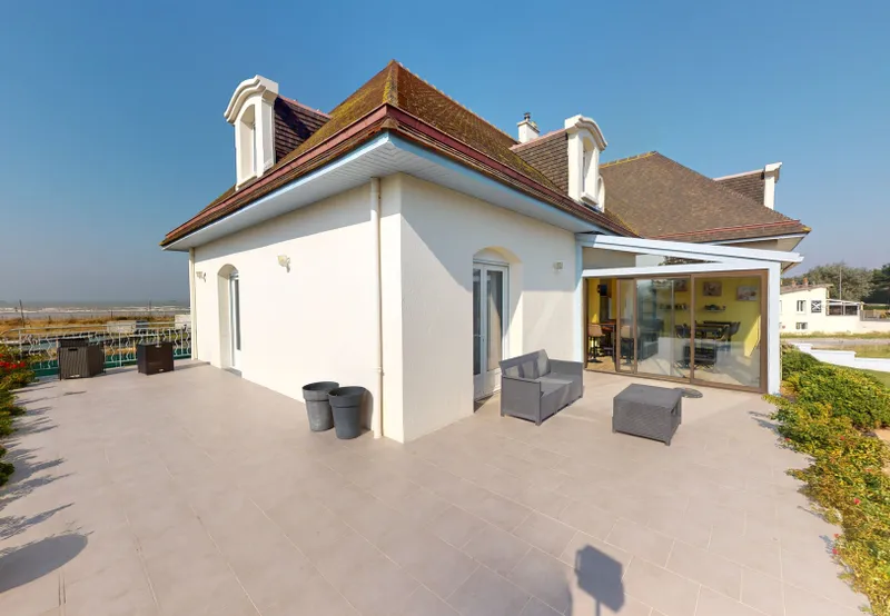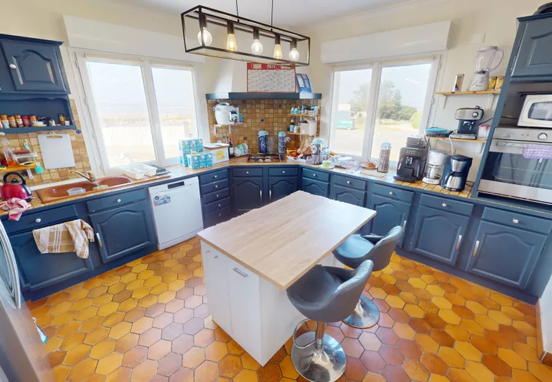 Cette villa avec une VUE MER dans presque toutes les pièces est composée au rez-de-chaussée de 3 chambres dont deux avec salle d'eau, un séjour et sa cuisine attenante, un espace d'accueil/petit déjeuner pouvant être ouvert sur le séjour, 2 WC.